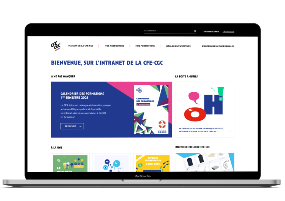 Conception et développement du site intranet de l’organisation syndicale.
