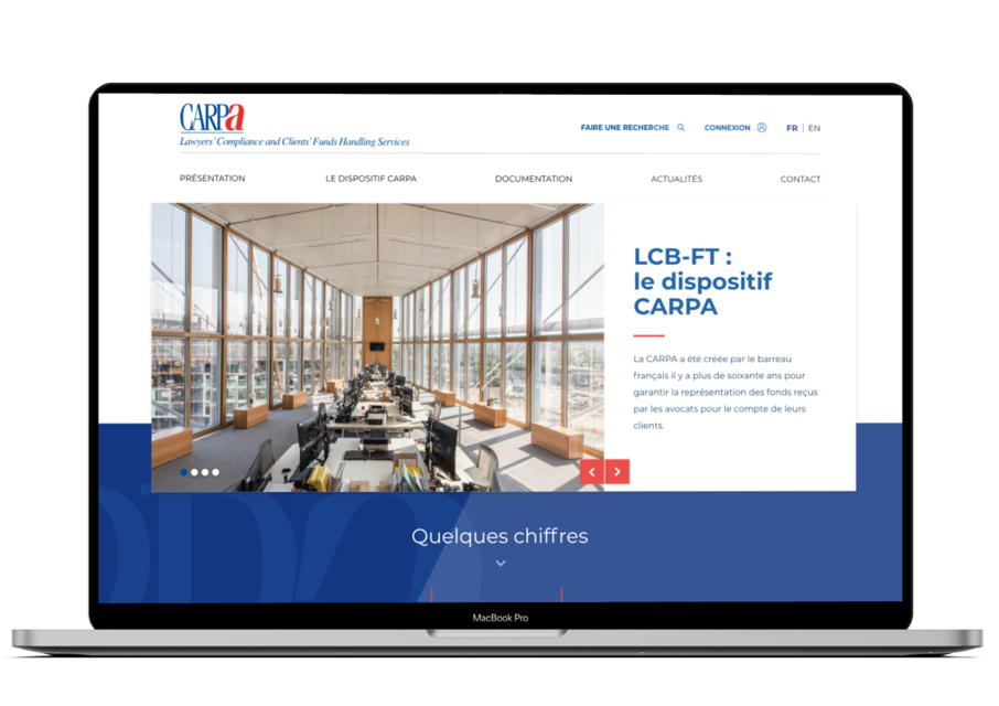 Conception UX, design et développement du site institutionnel de la CARPA de Paris avec une permission d’accès sécurisée aux documents.